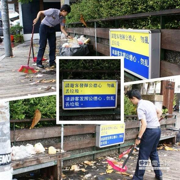 員警掃垃圾 墾丁大街的悲哀