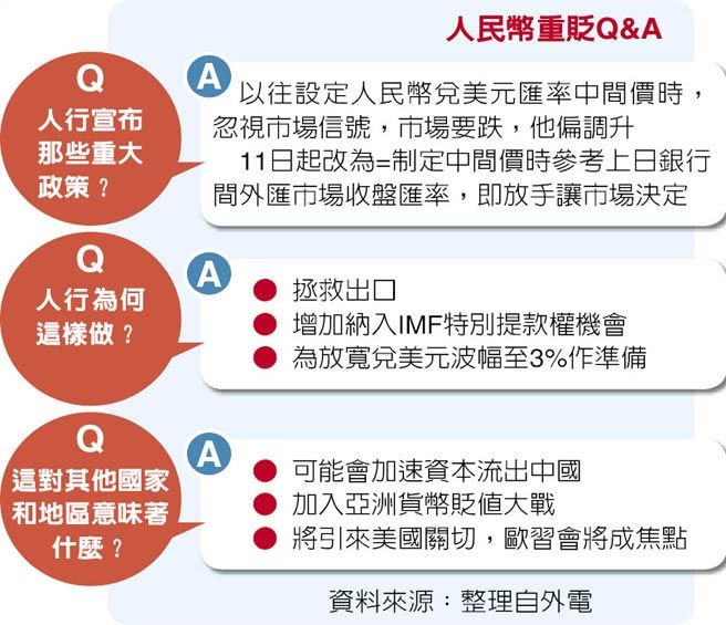 昨日人行的聲明,標示人民幣匯率政策的改變,對於大陸政府來說,除了加入日本及新興國家的貨幣貶值戰爭外,別無選擇。